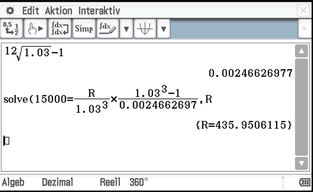 Persönlich arbeite ich auch im finanzmathematischen Bereich schon jahrelang mit dem ClassPad. Deshalb möchte ich heute ein Beispiel aus der Rentenrechnung auf zwei verschiedene Arten mit dem ClassPad lösen: